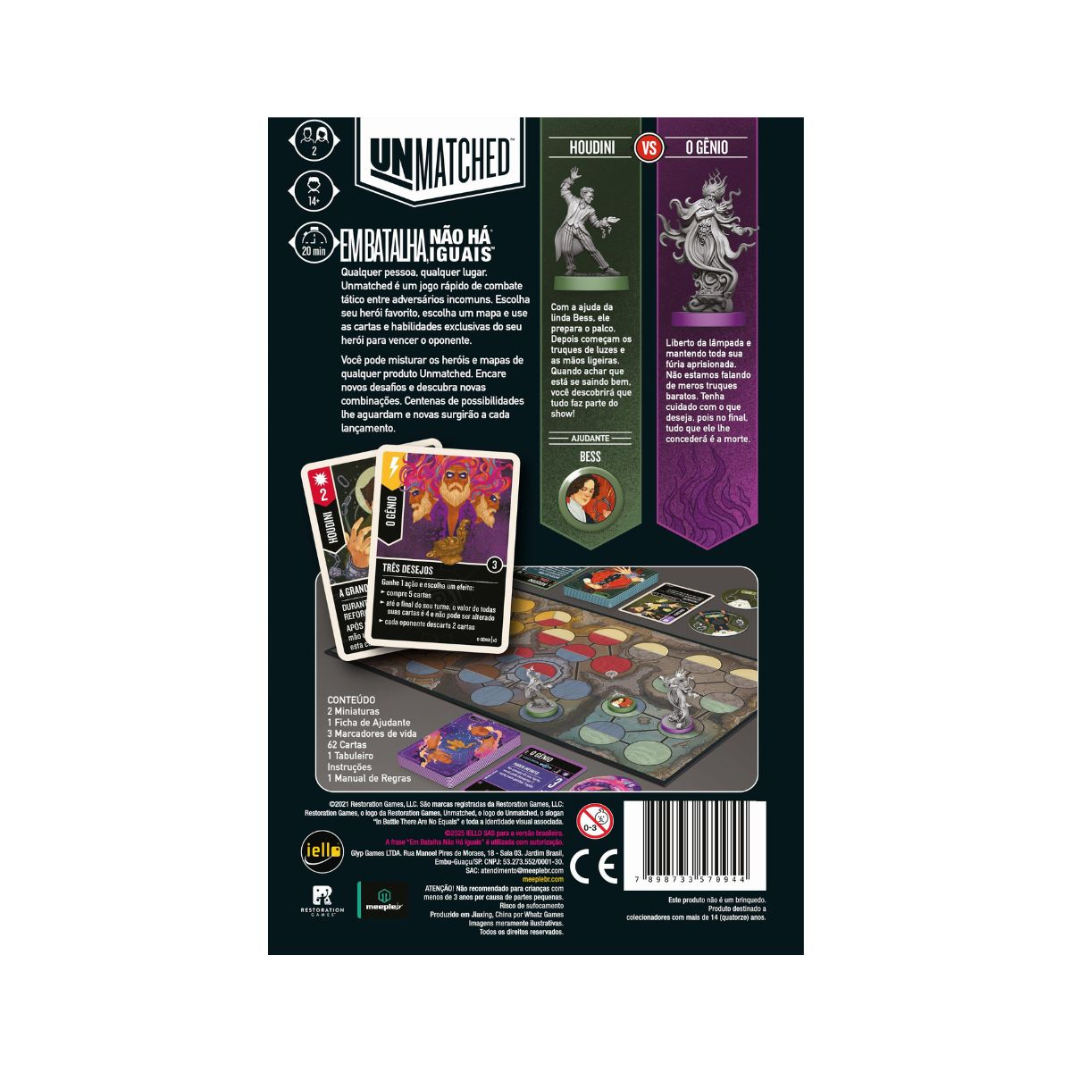 Pegue personagens de caixas diferentes e crie os confrontos mais inusitados que puder imaginar. As regras são simples, mas a estratégia para a vitória é o que motivará os jogadores a cada nova partida! São centenas de possibilidades para toda a linha Unmatched. Mas lembre-se: no fim, só pode haver um vencedor.