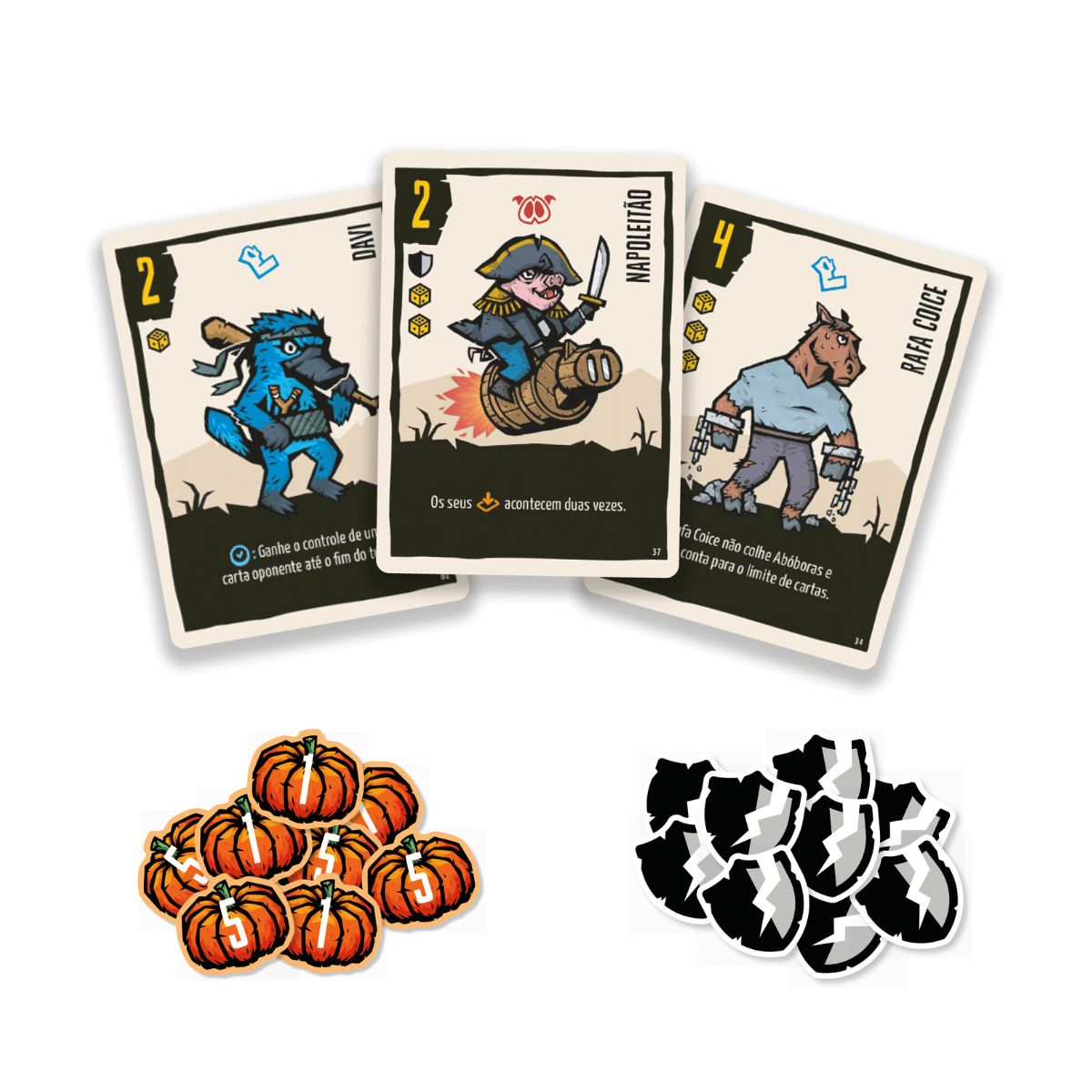O jogo termina imediatamente quando a quarta carta de Fazendeiro é revelada ou assim que um jogador coletar abóboras suficientes!