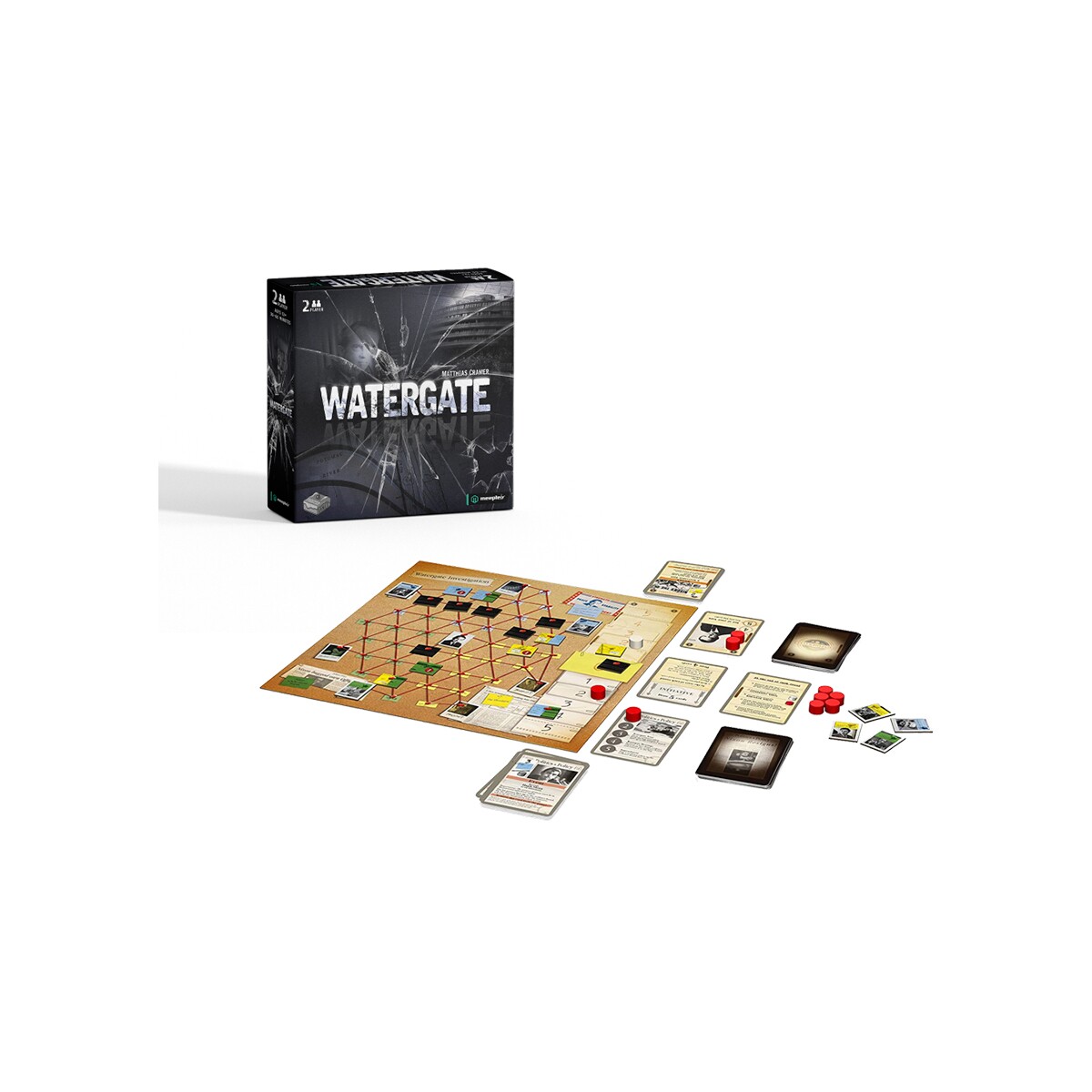 Com regras acessíveis e dois baralhos completamente diferentes para cada jogador, Watergate traz a história à vida de uma forma nova a cada partida.