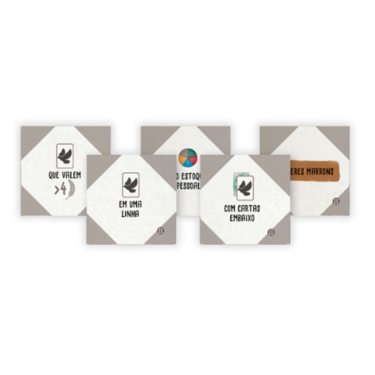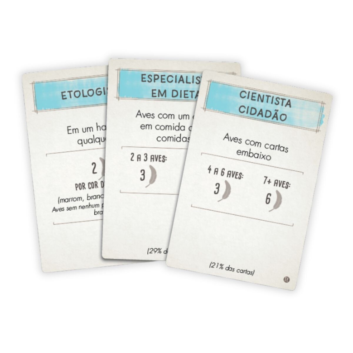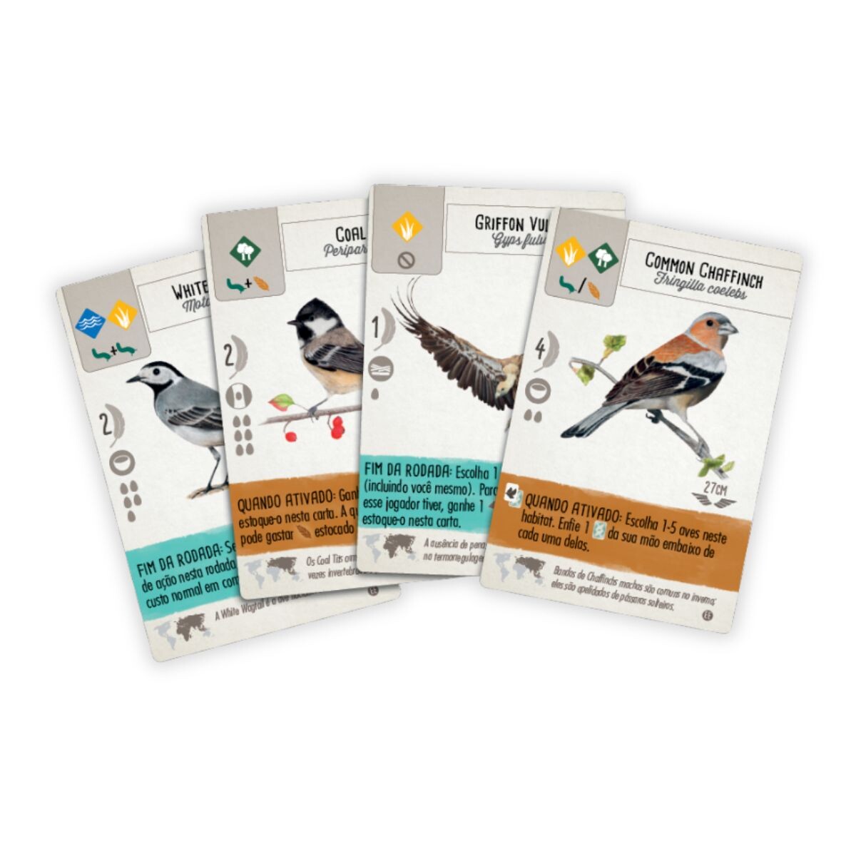 A expansão europeia também inclui uma bandeja adicional para armazenar a coleção crescente de pássaros, bem como 15 ovos roxos, fichas de comida extras, novos objetivos de final de rodada e cartas de bônus, além de um novo colorido bloco de pontuação, projetado para pontuação multiplayer e solo.