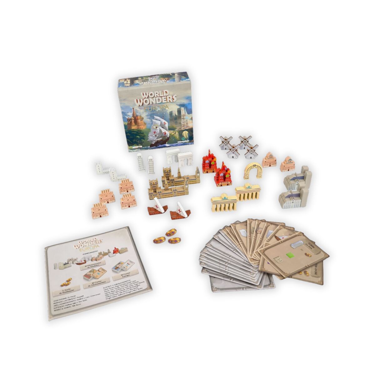 O World Wonders – Europa Wonders Pack, traz uma nova camada estratégica e temática para o jogo base, adicionando 10 monumentos históricos europeus, como a Catedral de Notre-Dame, a Torre de Belém, o Arco do Triunfo e muitos outros ícones culturais. Cada novo monumento vem com suas próprias cartas e regras específicas de construção, exigindo atenção redobrada ao posicionamento, tipo de terreno e construções adjacentes, tudo isso sem perder a fluidez do jogo original.