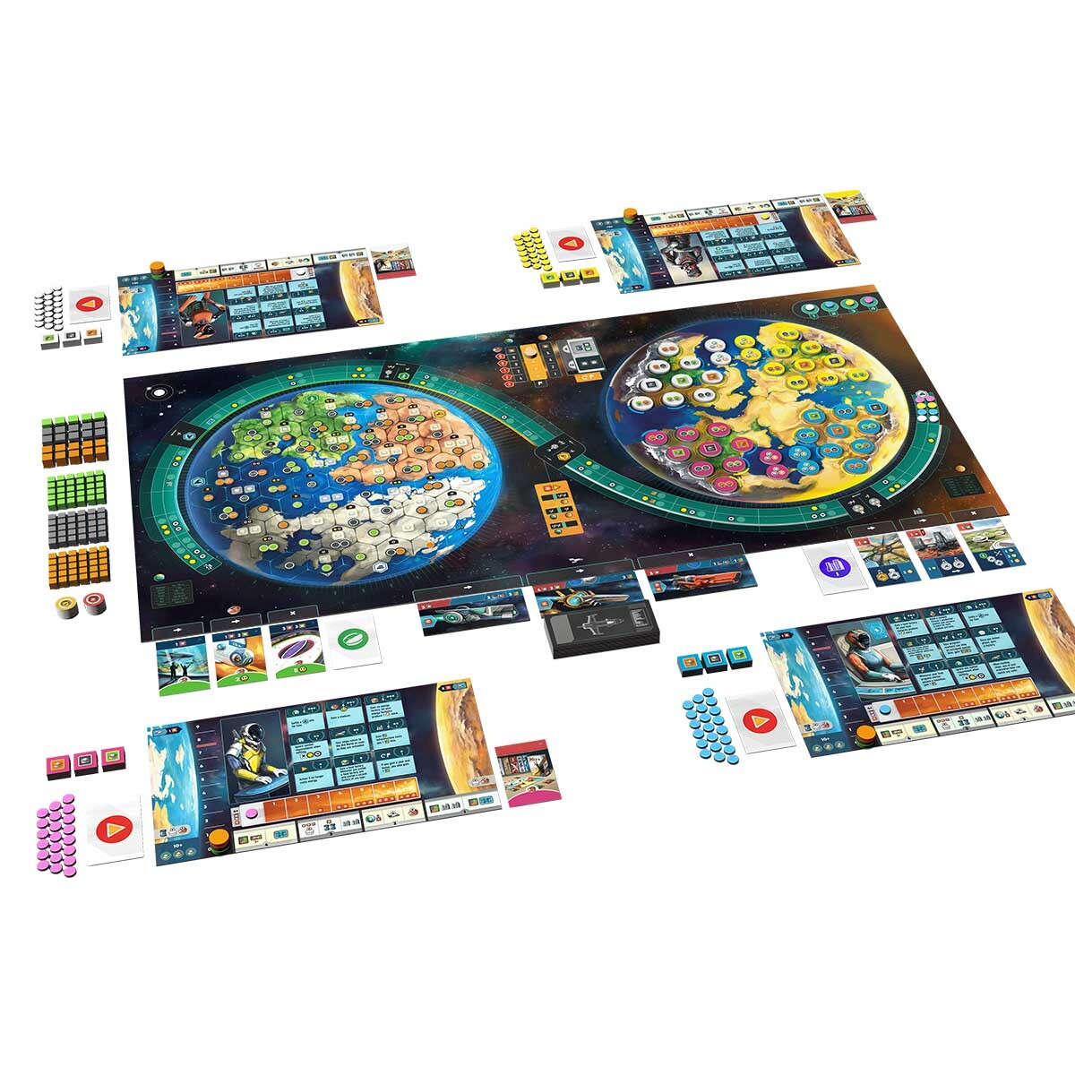 Você começa o jogo com uma economia em pleno funcionamento e, ao longo do jogo, deve desmantelar essa economia e movê-la. A renda no velho planeta diminui com o tempo, e a produção provavelmente não será muito melhor até que você se estabeleça no novo planeta e coloque as coisas em ação. Os recursos não podem ser misturados entre os planetas, então você precisa ter um cuidado especial com seu planejamento.